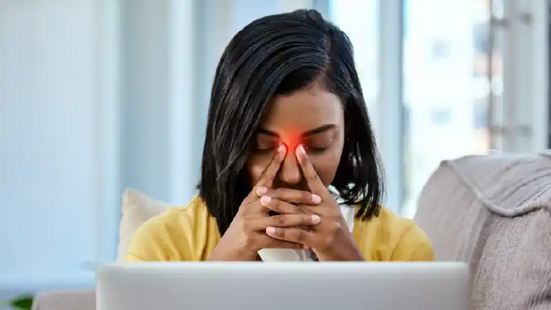- Facial pain or swelling around the eyes, cheeks, or forehead