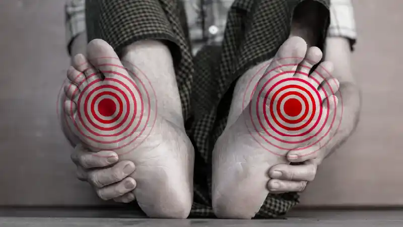 High blood sugar levels can cause nerve damage and burning in the feet of people with diabetes. Foot pain can be reduced significantly by controlling blood sugar through a healthy lifestyle, regular exercise, and prescribed medication.