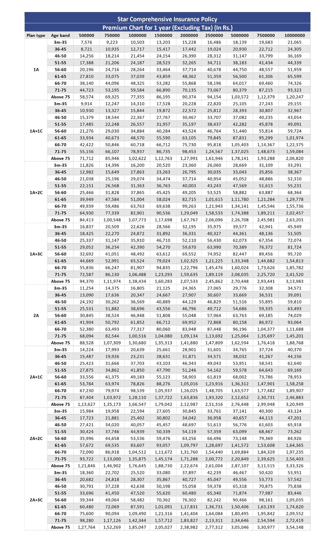 వ్యక్తిగత మరియు ఫ్లోటర్ ప్రాతిపదికన ప్రయోజనం/ప్రీమియం ఉదాహరణను దయచేసి ఇక్కడ క్లిక్ చేయండి.